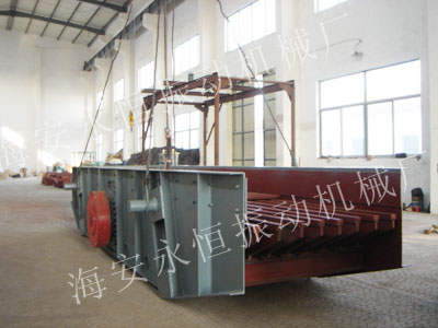 機器由箱體、振動電機、柵條排和彈簧減振裝置等四部分組成。箱體為一剛性結構,內測 與物料接為雙臺階式,間隙呈楔形以利徘料,柵條材質為耐磨高錳鋼。減振裝置采用優質螺旋 彈簧。