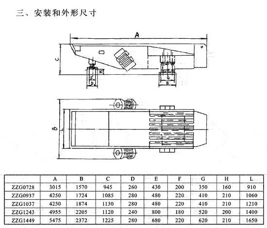 ZZG 系列低矮式振動給料機是本我廠根據引進英國技術開發的低矮式自同步慣動給料設備,主要用于粗碎破碎機前道與輸送大塊物料用,是粗碎破碎機必不可少的配套設備。